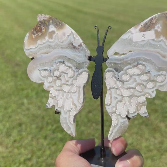 Characteristics: Orbs, Dendrites, Moss and Sugar Druzy Pocket on each Wing